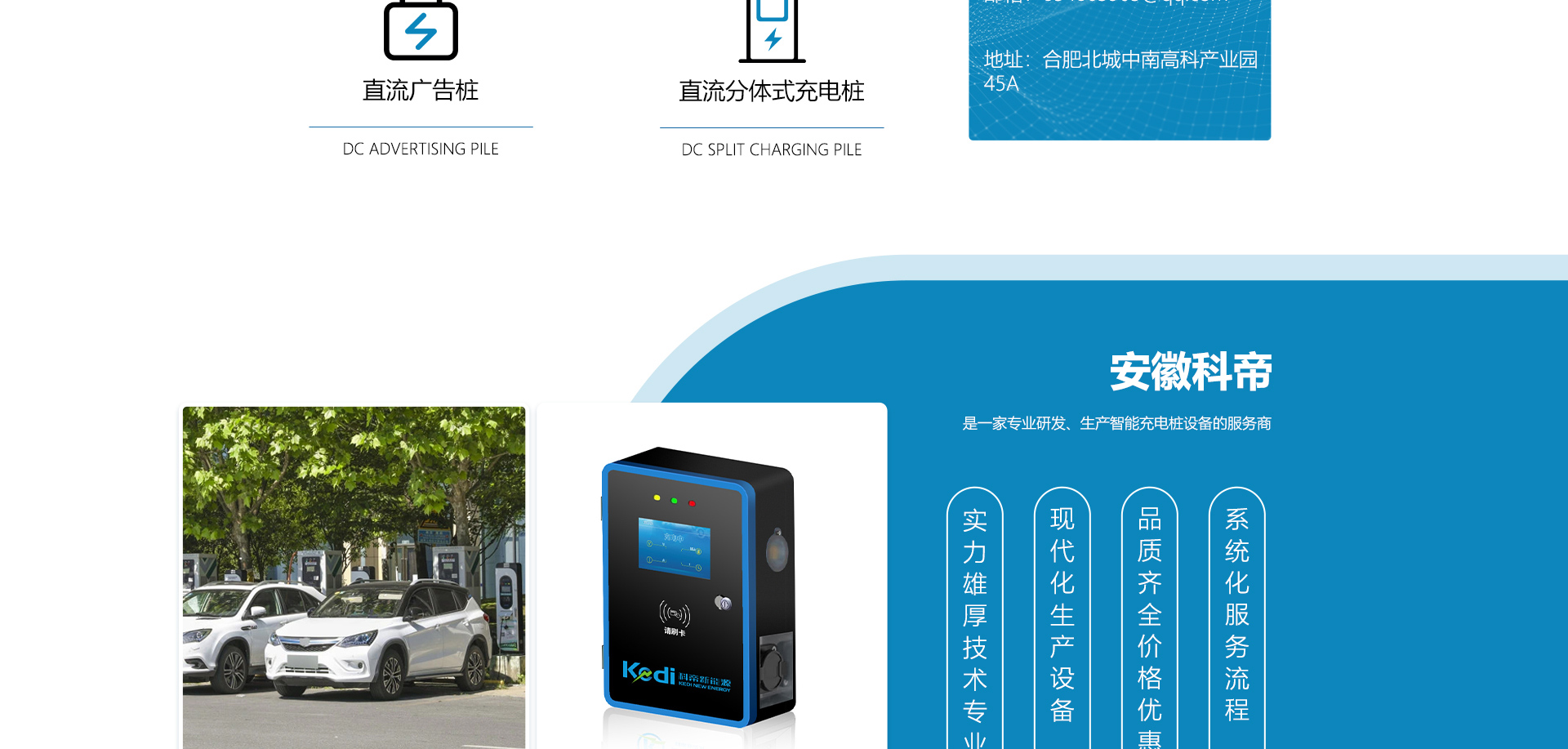關(guān)于我們安徽科帝新能源科技有限公司坐落于安徽省會-合肥,是一家研發(fā)、生產(chǎn)智能充電樁設(shè)備,汽車充電站后臺監(jiān)控管理系統(tǒng)和生產(chǎn)高壓開關(guān)設(shè)備的企業(yè).由專門的研發(fā)團隊、管理團隊按照現(xiàn)代化企業(yè)制度規(guī)范設(shè)立的有限責任公司。致力于為能源智能、安全的應(yīng)用和節(jié)能減排提供整體的技術(shù)與產(chǎn)品解決方案??频奂邪l(fā)、設(shè)計、生產(chǎn)、銷售以及服務(wù)于一體,在電動汽車充電方案,充電設(shè)施建設(shè)和城市配電方面擁有廣泛的技術(shù)研究及經(jīng)驗積累,為客戶提供安全、智能的充電設(shè)備及充電運營站建設(shè)一體化解決方案。并堅持以人為本、質(zhì)量為先、顧客至上、不斷創(chuàng)新”的企業(yè)理念,為能源行業(yè)的發(fā)展、節(jié)能減排做出重大的貢獻。公司擁有豐富的產(chǎn)品種類,目前科帝已研發(fā)生產(chǎn)了三十多種產(chǎn)品,充電設(shè)備有直流一體式充電樁、直流分體式充電樁、直流廣告樁、交流廣告樁、廣告一體樁、壁掛交直流樁;等多種充電設(shè)備;每一款產(chǎn)品都是精心打造,力求為客戶提供優(yōu)越的用戶體驗。展望未來科帝將通過持續(xù)的自...